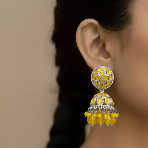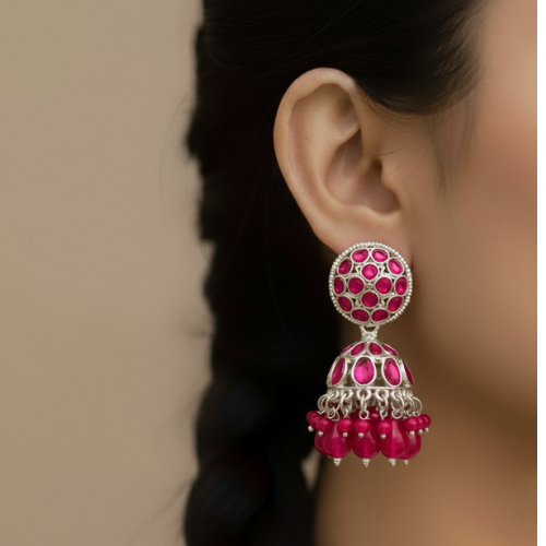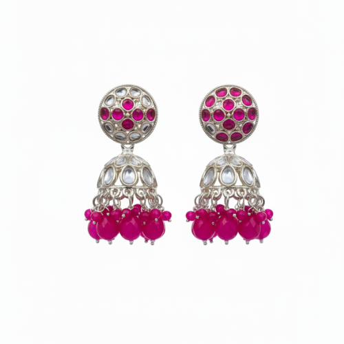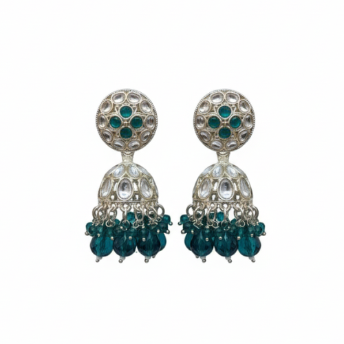 Presenting an elegant pair of silver-toned Jhumka earrings with a contemporary twist. The